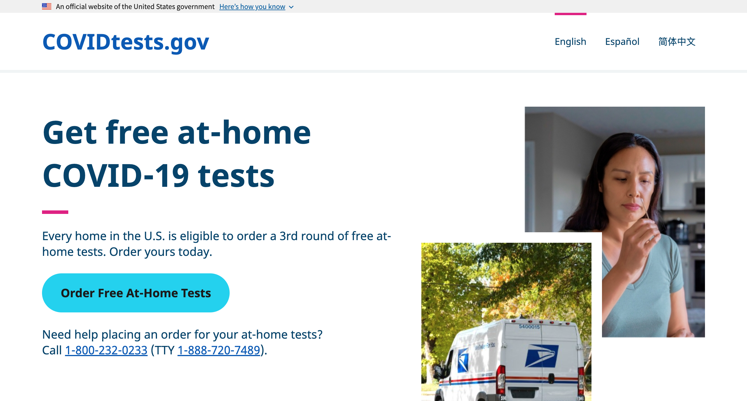 I was Design lead on Covidtests.gov, a government site lets the public order free at-home COVID tests through the US Postal Service. I coordinated visual, content, and UX design across multiple government agencies for the entire project, ensuring a seamless flow from our landing page to the USPS order confirmation email.